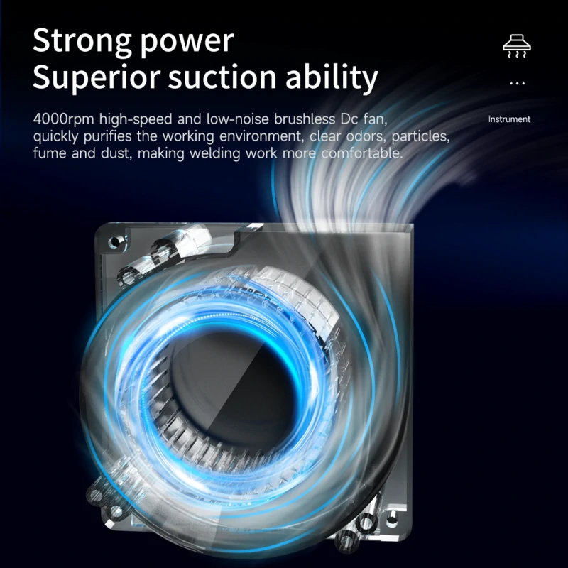 4000 rpm brushless DC motor effectively removes fumes and pollen without noise.