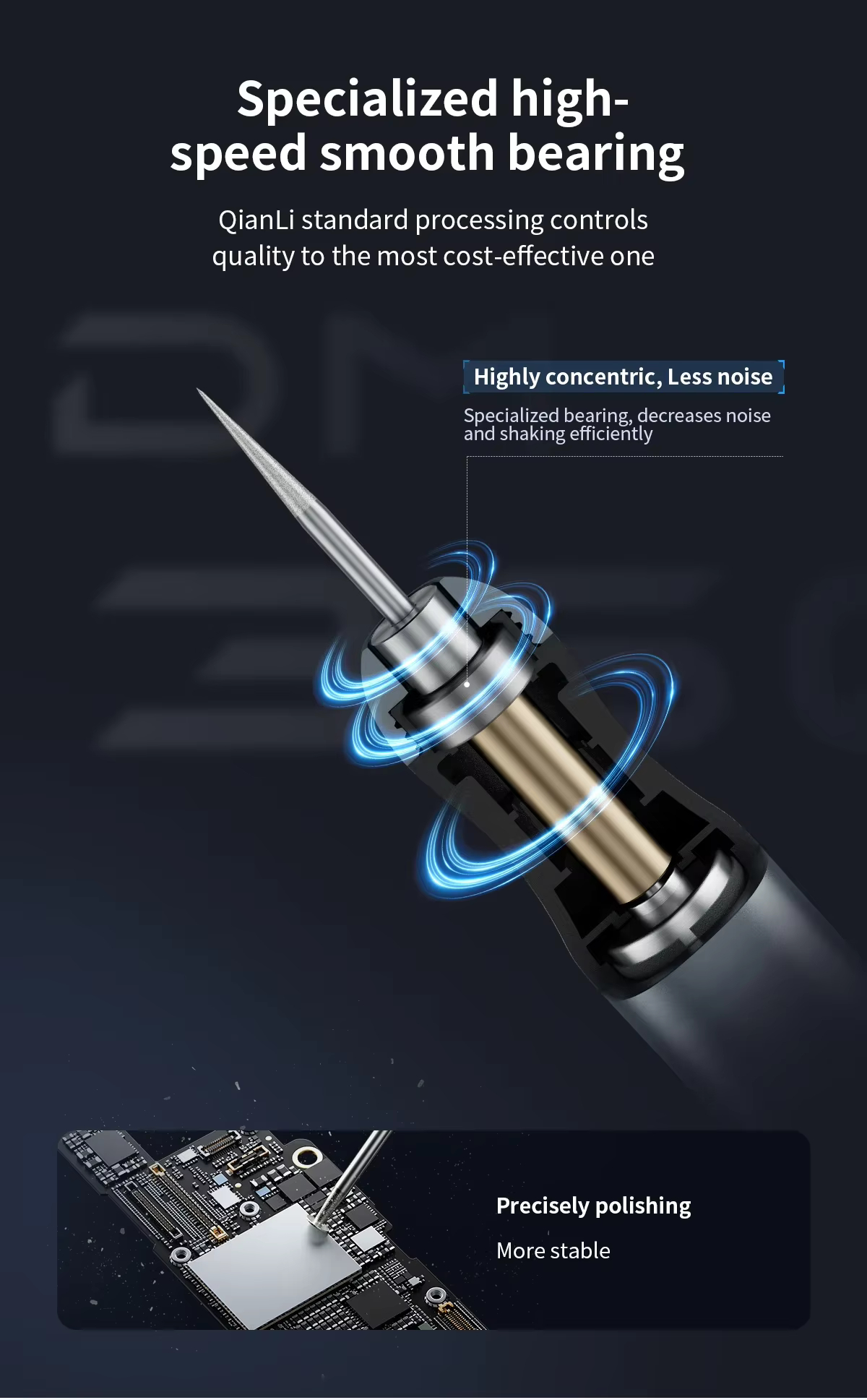 Specialized bearings reduce noise and vibration, ensuring stable polishing and grinding.