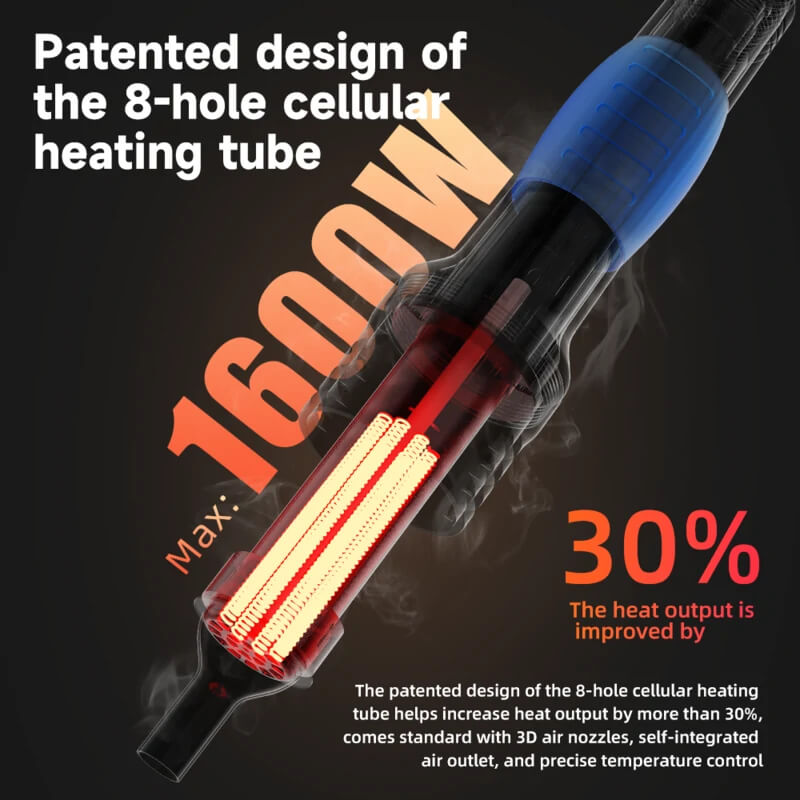 Thanks to the patented 8-hole heating tube, the station achieves over 30% greater thermal efficiency than traditional solutions, ensuring precise temperature control and reliable operation in all conditions.