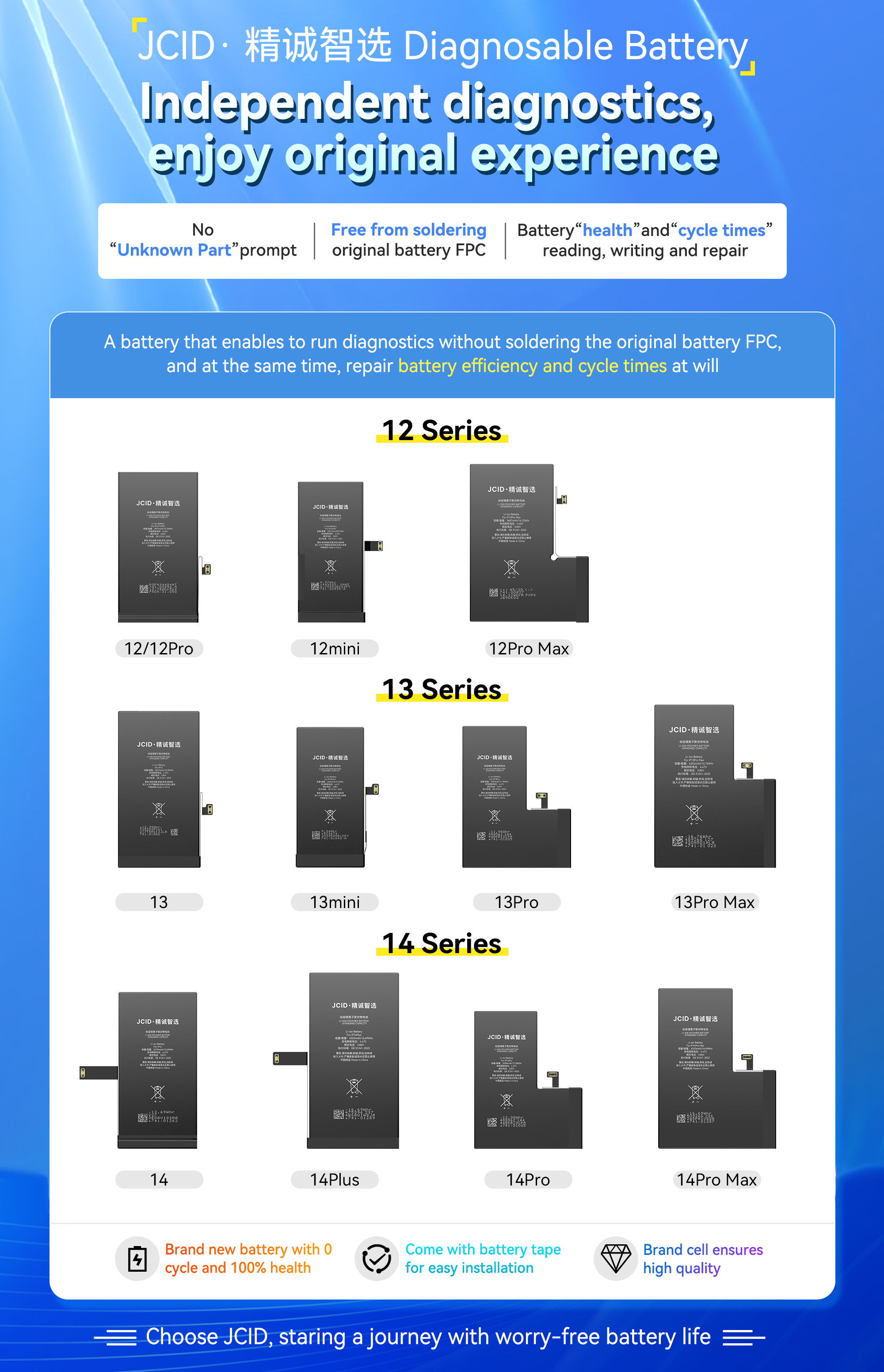 Through in-depth market research, JCID identified serious issues with the quality of available iPhone batteries. In response to these challenges, the company decided to develop its own batteries, which quickly became some of the best on the market. JCID products are characterized by exceptional durability, reliability and performance, making them the preferred choice for both service centers and individual users.