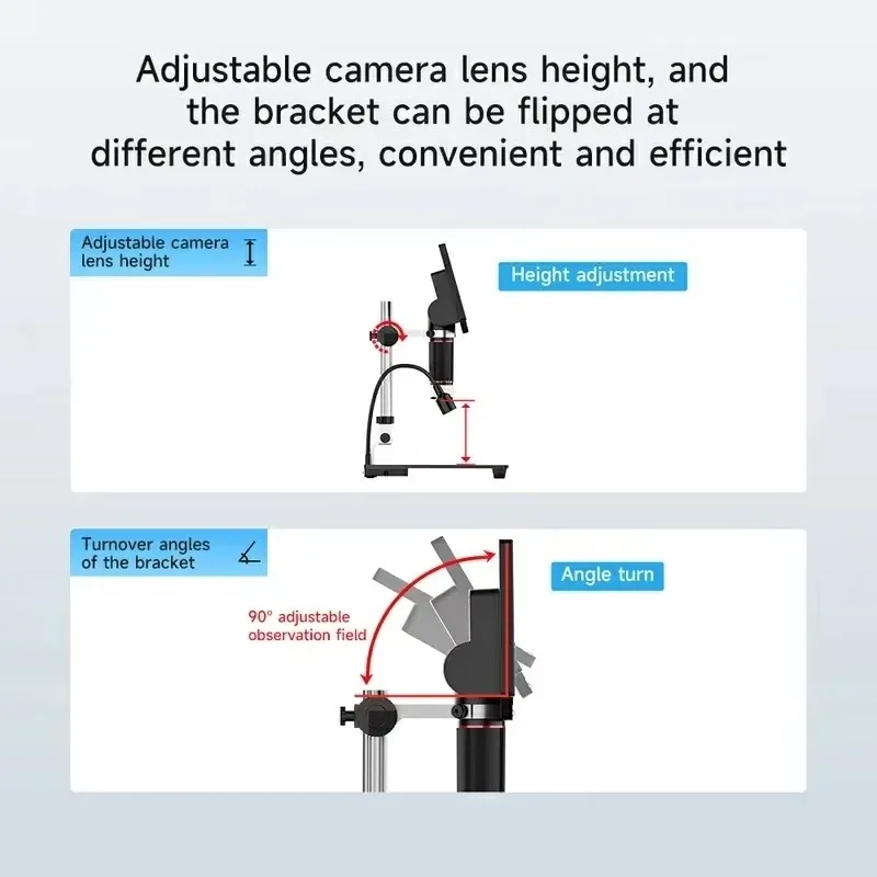 Adjustable height and angle allow you to adjust the microscope to your workstation, making it an ideal tool for GSM repair shops, electronics technicians.