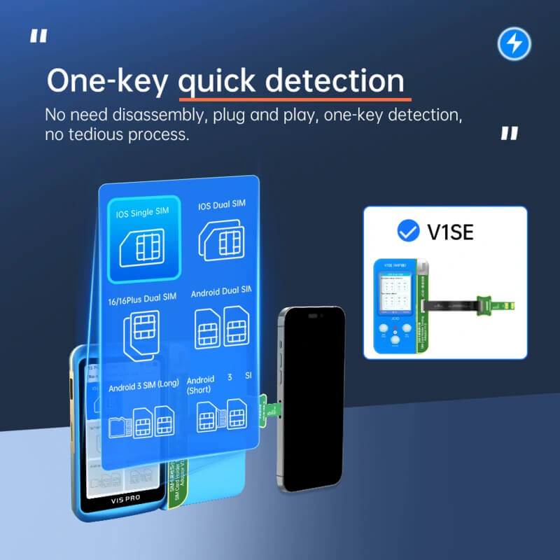 Professional service kit for quick testing of SIM and TF (microSD) slots without disassembling the phone. Works with JCID V1S Pro / V1SE, supports iOS single/dual SIM, as well as Android SIM + TF. Perfect for verification after modifications and repairs – one click, clear result, full control.