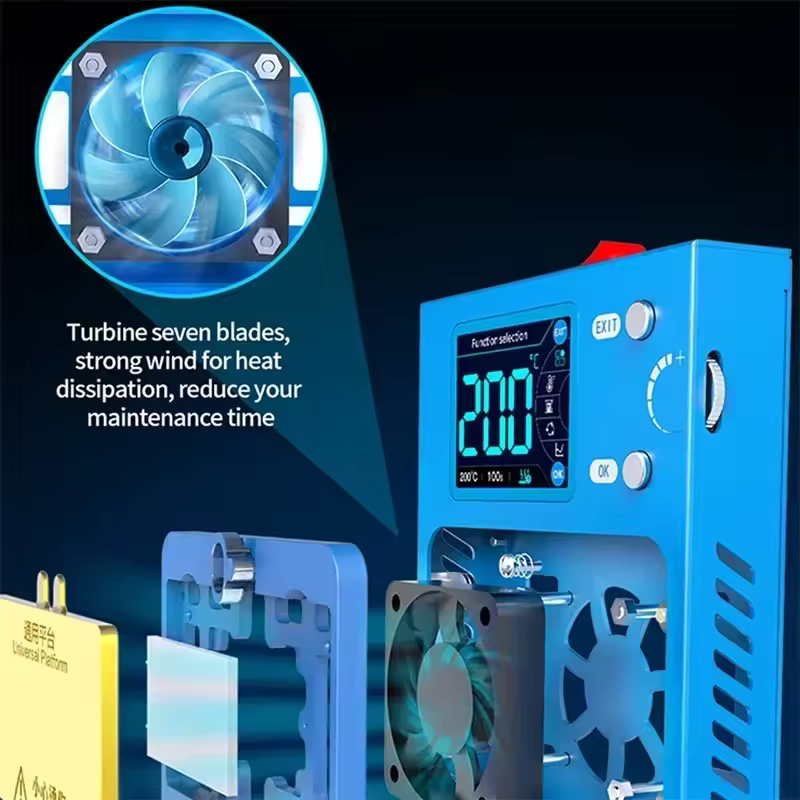Station for quick unsoldering the middle layer of iPhone X to 17 Pro Max motherboards (so-called sandwich). It can also be used as a heater to evenly distribute temperature during soldering.