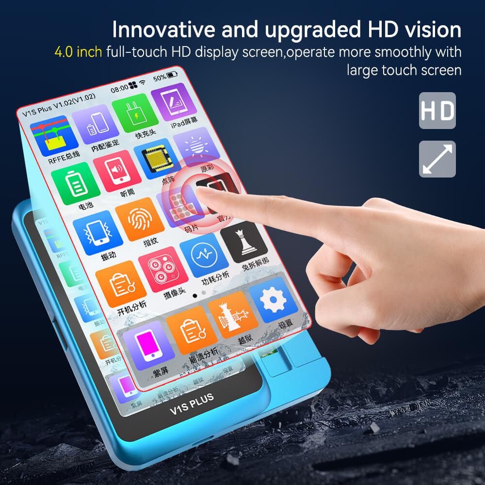 JCID V1S Plus is a new generation intelligent programmer for repairing iPhone and iPad components. It combines a large 4-inch touchscreen, online/offline support, 2.4G/5G WiFi connectivity, and over 20 built-in service applications – the perfect choice for professional GSM service providers and advanced hobbyists.
