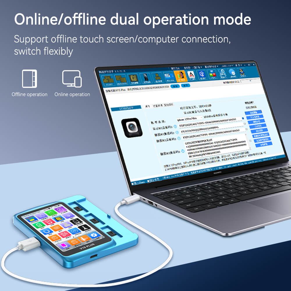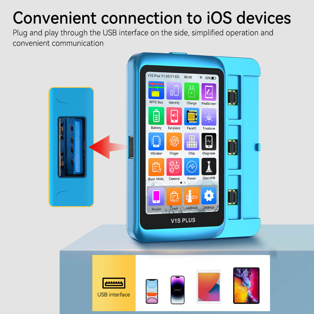 The side USB port enables plug-and-play with iPhone and iPad. Simple communication with the device shortens preparation time and speeds up the reading of original factory data for the screen, battery, and other modules.
