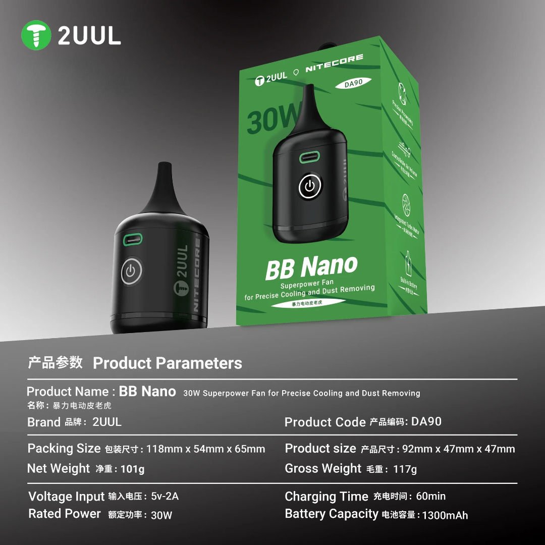 2UUL BB Nano DA90 – 30W Turbine Fan for precise cooling and dust removal