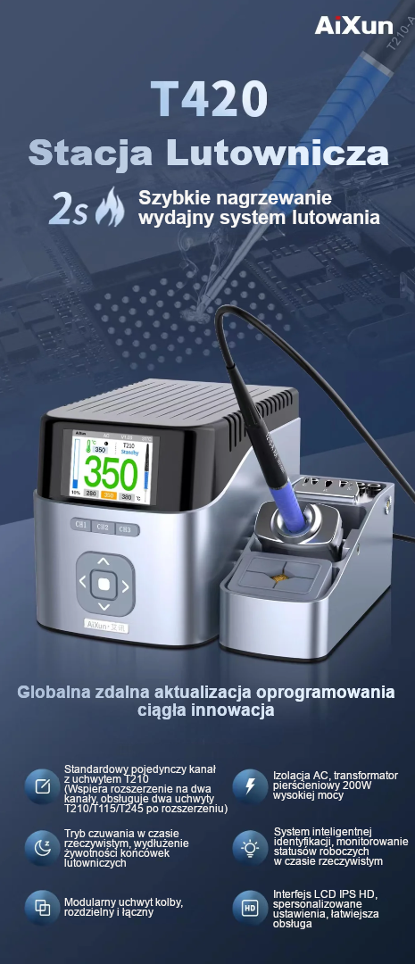 The Aixun T420 station is a tool that will revolutionize your work in soldering. Reliability, speed and precision are the features that make this station the first choice of professionals. Don't wait any longer and ensure the highest quality in your work!