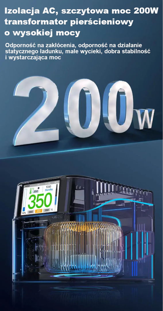 - High power and efficiency: The rated power of 200W allows for fast heating and efficient work. Fast heating in about 3 seconds to 350°C