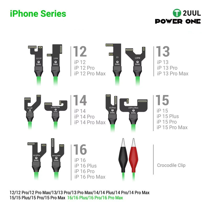 2UUL PW09 Power One to profesjonalne kable testowe do zasilania i diagnozowania modeli iPhone od serii 12 do 16 Pro Max. Pozwala szybko sprawdzić stan płyty głównej oraz zasilania urządzenia, bez konieczności pełnego montażu telefonu.