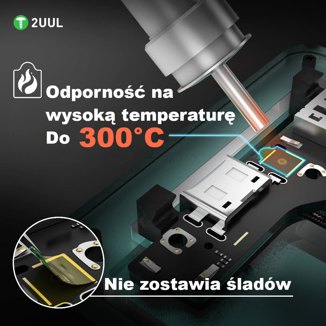 Podczas naprawy telefonu lub innego urządzenia elektronicznego zadbaj o skuteczną ochronę mikrofonu dzięki naklejkom ochronnym 2UUL DA32. Ten praktyczny zestaw 500 sztuk to niezbędny element w procesie serwisowym, który zabezpiecza mikrofon przed kurzem, wilgocią i uszkodzeniami mechanicznymi już na etapie naprawy. Naklejki o wymiarach 4,5 mm x 4,5 mm są łatwe w montażu, precyzyjnie wykonane i nie pozostawiają żadnych śladów po usunięciu. Dzięki odporności na wysokie temperatury do 300°C doskonale sprawdzają się podczas lutowania i innych prac serwisowych. Uniwersalne zastosowanie pozwala na wykorzystanie ich w telefonach, tabletach, laptopach i komputerach stacjonarnych.