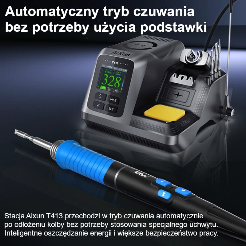 - Kompatybilność ze stacjami lutowniczymi: AiXun T400, T413 (z adapterem)