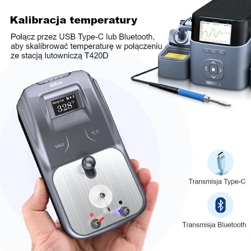 | Łączność / kalibracja: | USB Type-C, Bluetooth (m.in. współpraca z AiXun T420D) |