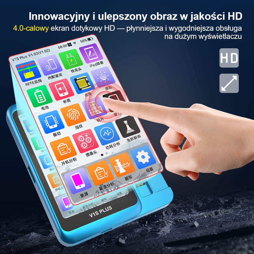JCID V1S Plus to inteligentny programator nowej generacji do naprawy komponentów iPhone oraz iPad. Łączy duży, 4-calowy ekran dotykowy, obsługę trybu online/offline, łączność WiFi 2.4G/5G oraz ponad 20 wbudowanych aplikacji serwisowych – idealny wybór dla profesjonalnych serwisów GSM i zaawansowanych hobbystów.