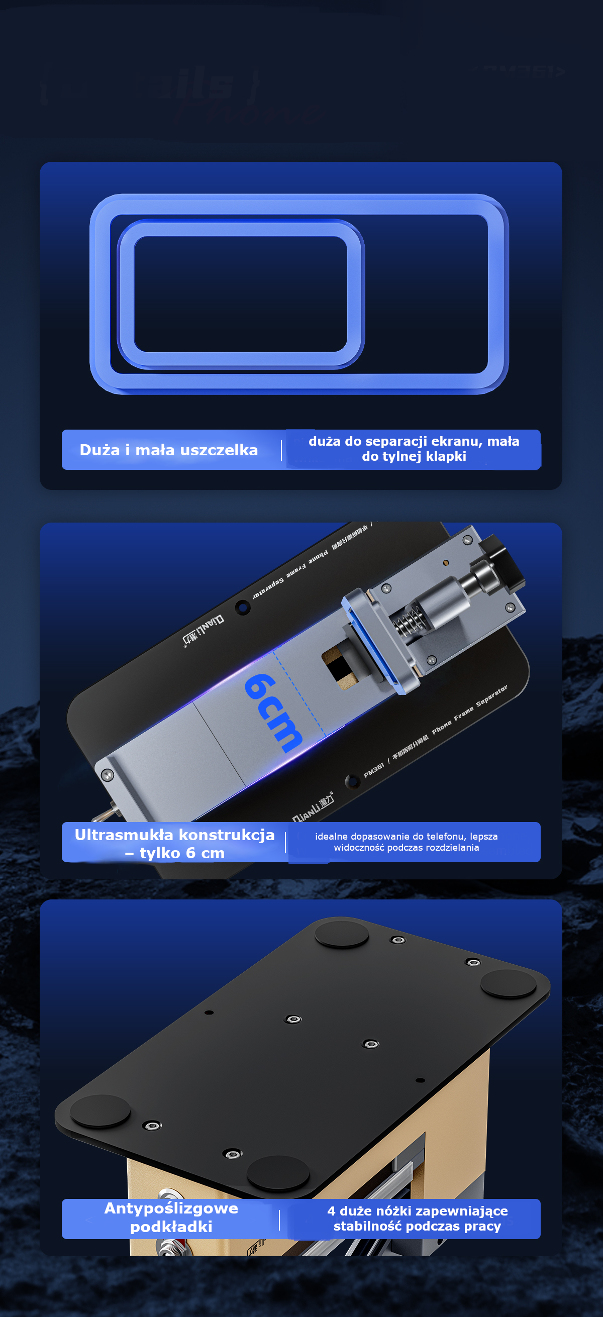 Oprócz ekranów separator sprawdzi się także przy zdejmowaniu tylnych szklanych obudów w smartfonach, co czyni go uniwersalnym narzędziem do wielu zastosowań.