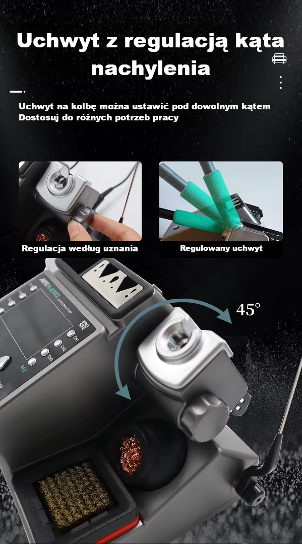 - Automatyczne uśpienie: Stacja przechodzi w tryb uśpienia, oszczędzając energię i przedłużając żywotność grotów.