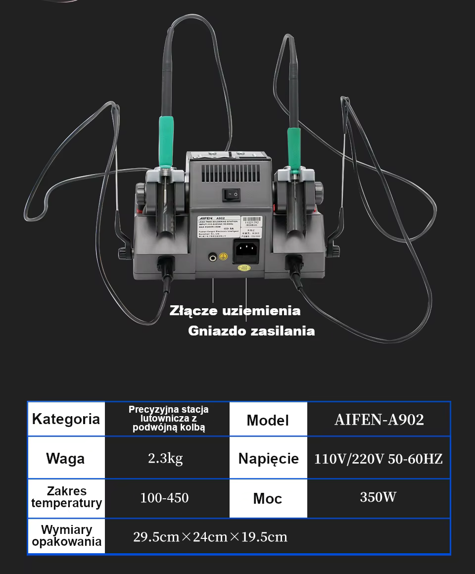 Stacja Lutownicza Aifen A902 Dwukolbowa Lutownica Cyfrowa 350W obsługująca kolby 115 / 210 / 245