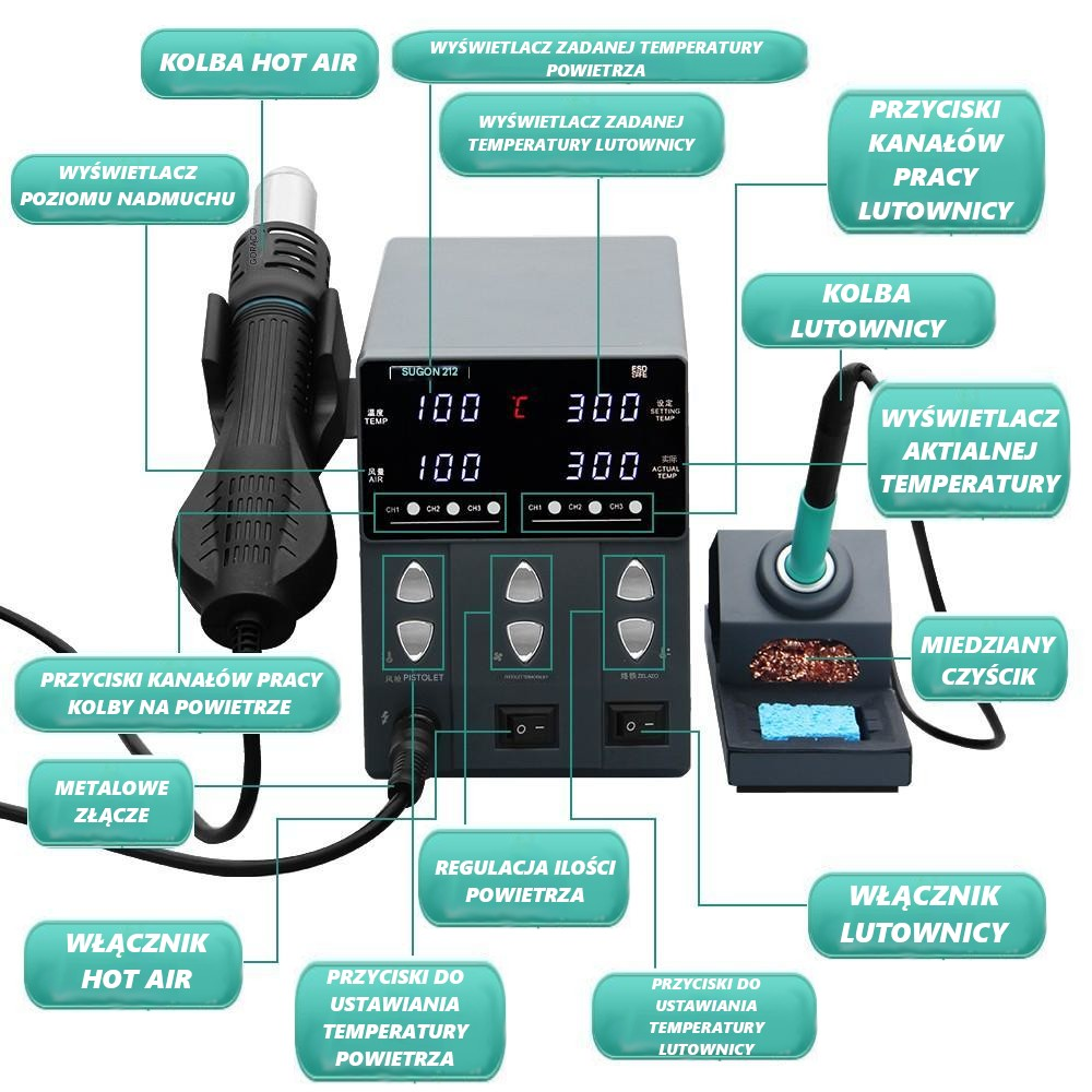 Stacja Lutownicza Sugon 212 2w1 Hot Air i T12