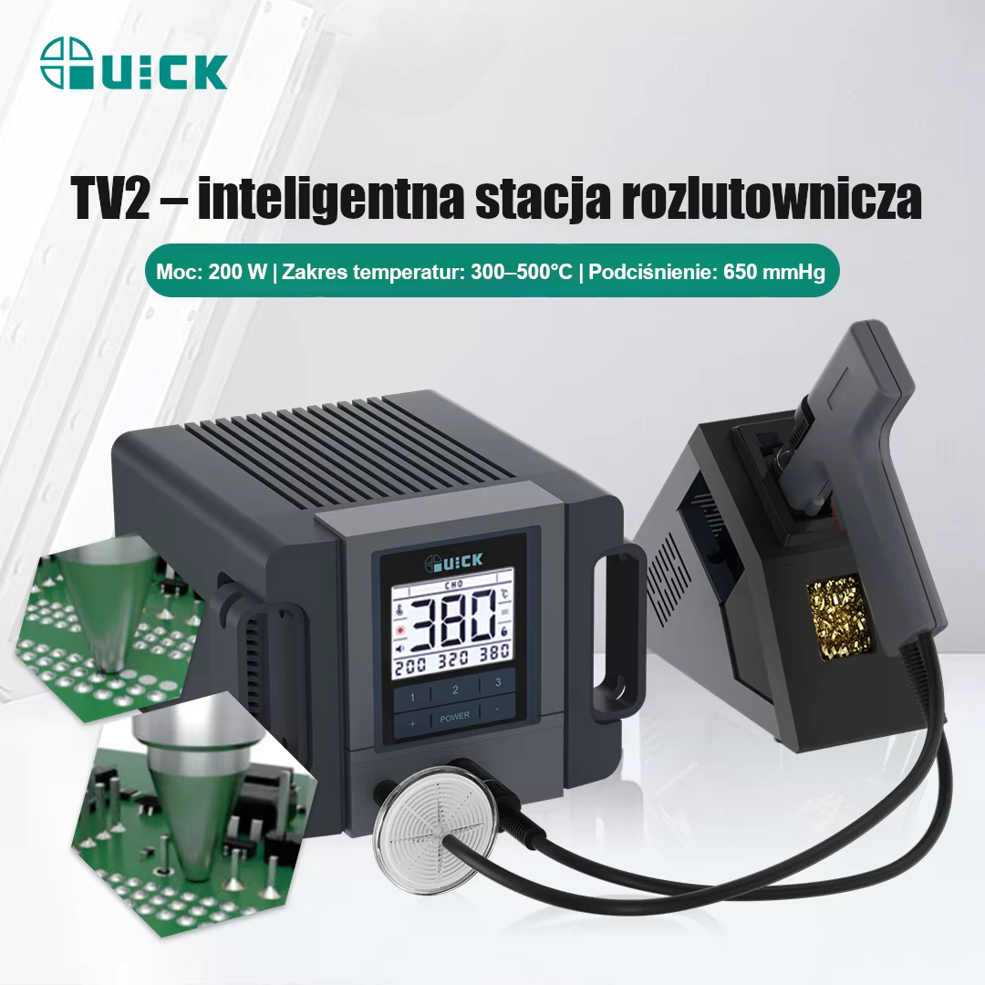 QUICK TV2 – inteligentna stacja rozlutownicza 200W (odsysanie cyny)