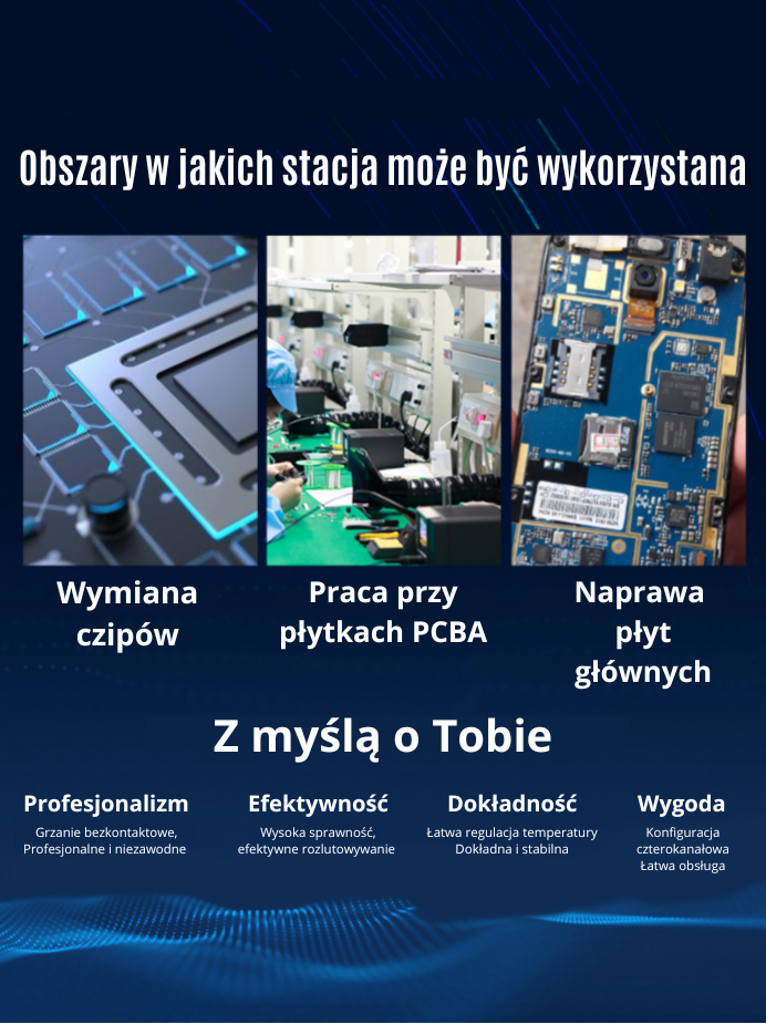 Dzięki połączeniu nowoczesnych technologii, dużej mocy oraz innowacyjnych funkcji, stacja Quick 861 Pro jest idealnym narzędziem do precyzyjnych prac serwisowych i lutowniczych. Sprawdź jej możliwości i wprowadź swój warsztat na wyższy poziom!