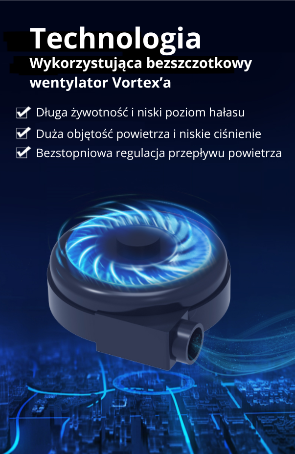 - Gwarantuje niezawodność, cichą pracę i dostarcza odpowiednią ilość powietrza, nawet przy intensywnym użytkowaniu.