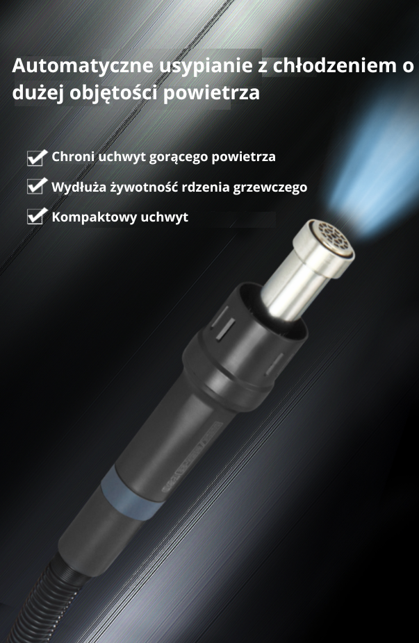 - Funkcja stopniowego chłodzenia po zakończeniu pracy wydłuża żywotność grzałki i poprawia bezpieczeństwo użytkowania.