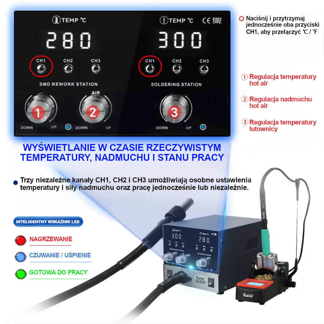 KAISI 8624P – Profesjonalna Stacja Hot Air + Lutownica 2w1