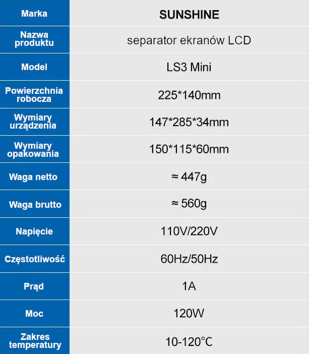 Mata grzewcza do separacji LCD Sunshine LS3 mini