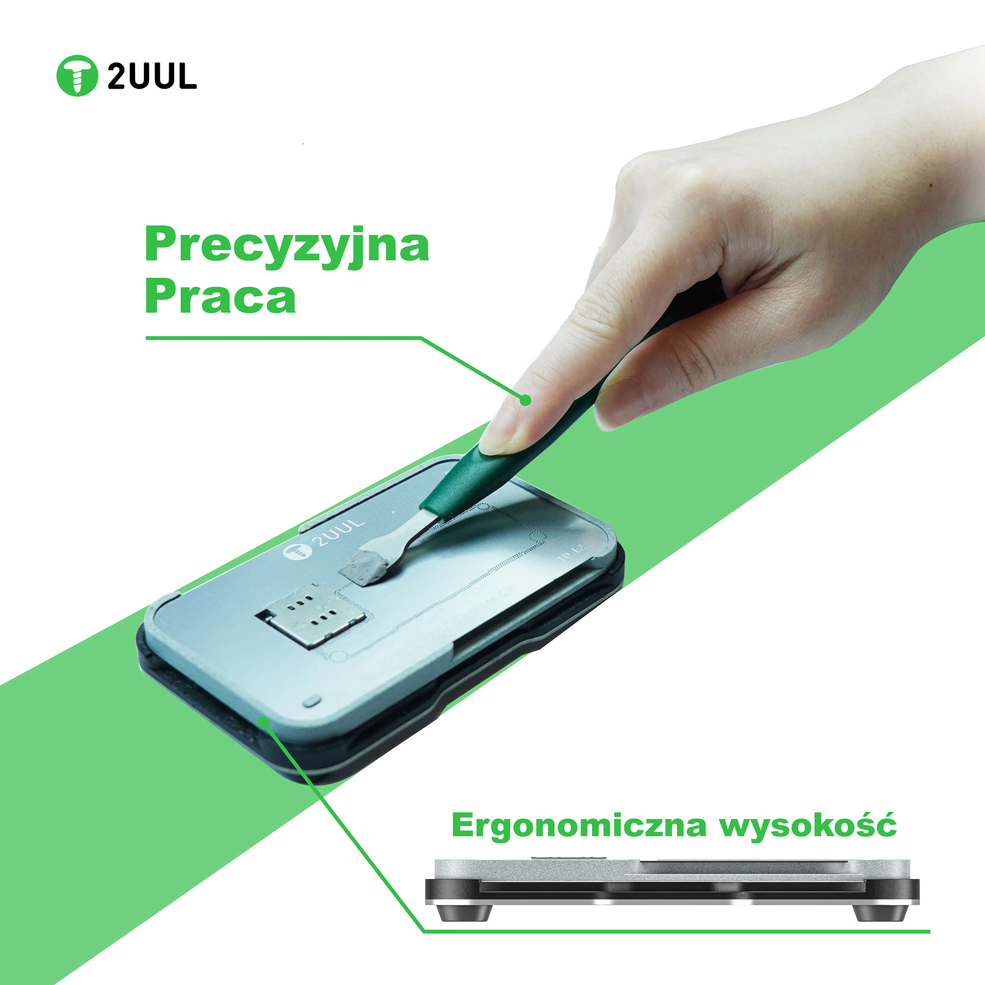 2UUL BH13 to profesjonalna platforma 5 w 1 przeznaczona do precyzyjnego reballingu płyt głównych iPhone 12–16. Wykonana z wysokiej jakości aluminium i wyposażona w supermocne magnesy, gwarantuje stabilność oraz idealne dopasowanie podczas pracy.