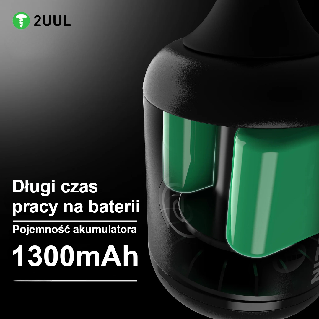 Akumulator 1300 mAh – długi czas pracy i szybkie ładowanie przez USB-C.