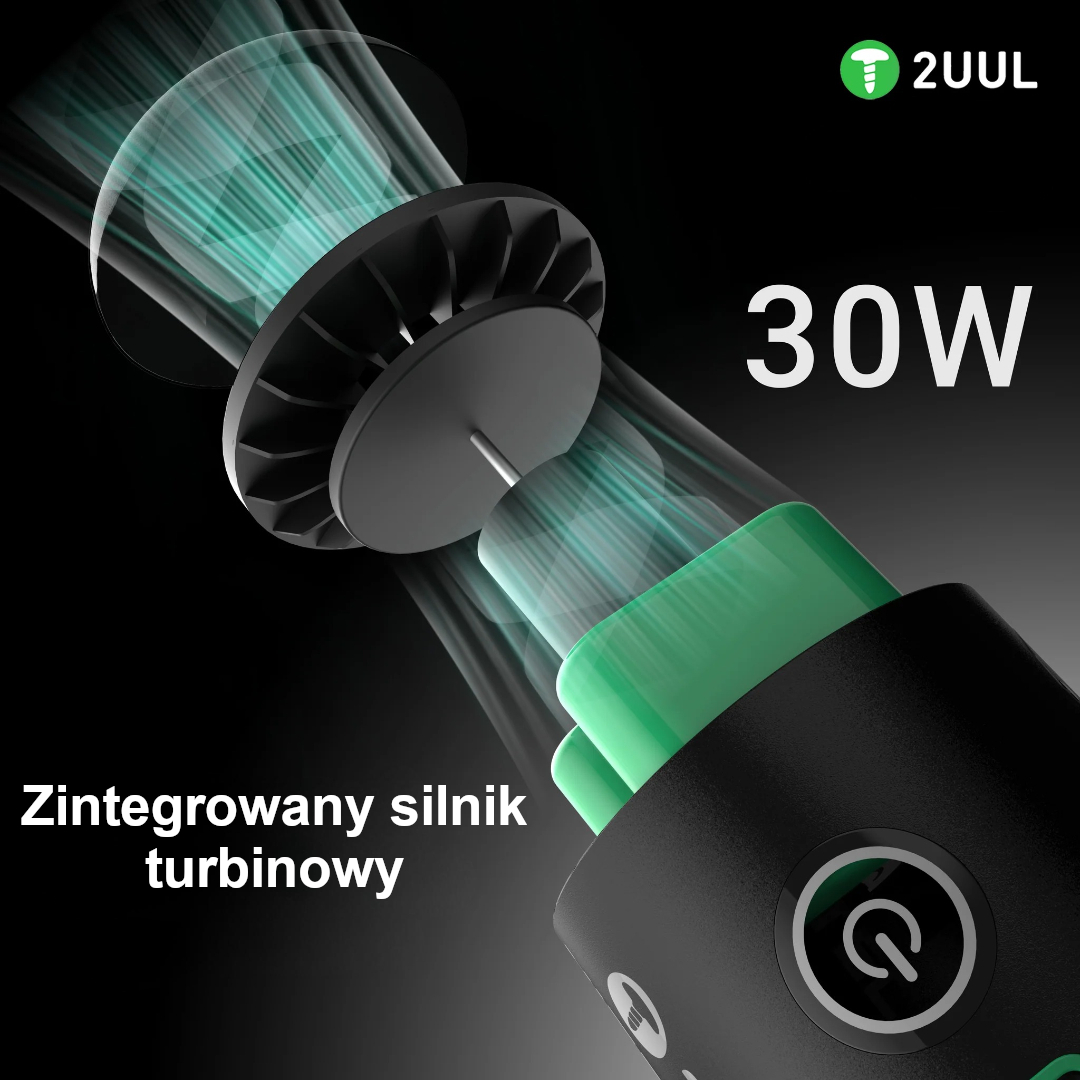 Zintegrowany silnik turbinowy 30W zapewnia duży przepływ powietrza i precyzyjne czyszczenie nawet mikroszczelin.