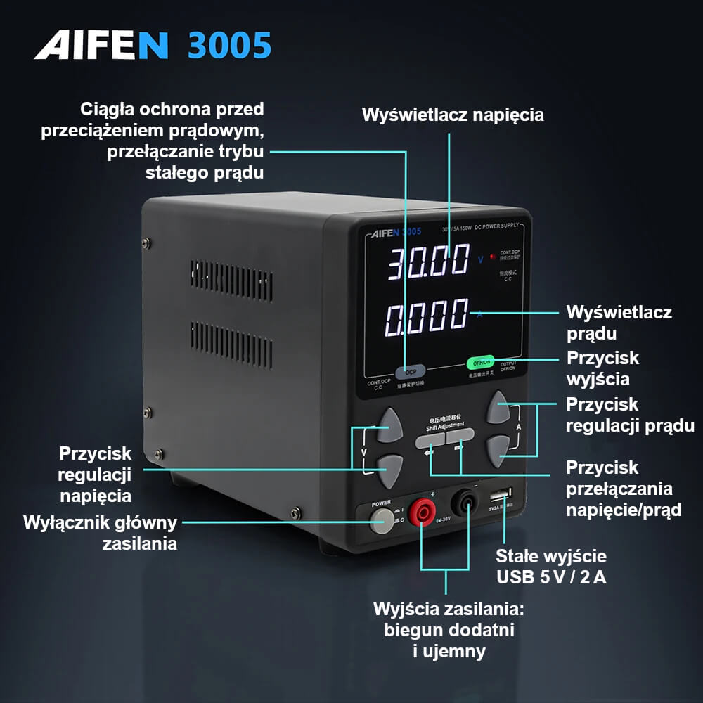 AIFEN 3005 - Regulowany Zasilacz serwisowy DC 150W 30V 5A